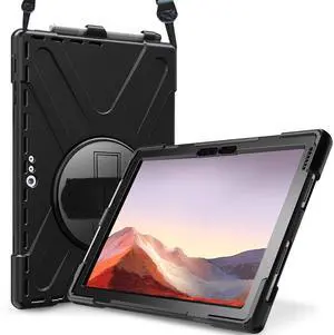 ProCase Surface Pro 6/ Surface Pro 5/ Pro 4/ Pro LTE Case, Full Body Hybrid Protective Case, 360 Degree Rotatable Heavy-Duty Cover with Adjustable Hand Strap, Shoulder Belt and Kickstand -Black