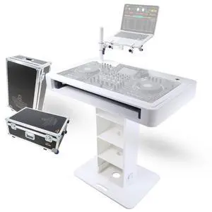 ProX XZF-DJCT W Case | White Control Tower DJ Booth w/ Laptop Stand & Flight Cases