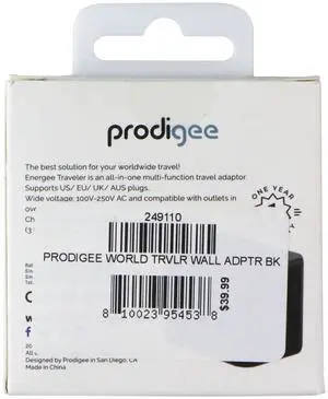Prodigee Energee World Traveler USB-C/USB-A AC Travel Adapter - Black