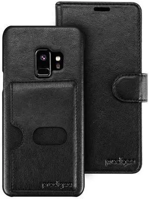 Prodigee Wallegee Samsung Galaxy S9 Leather Wallet Case Black 2-In-1