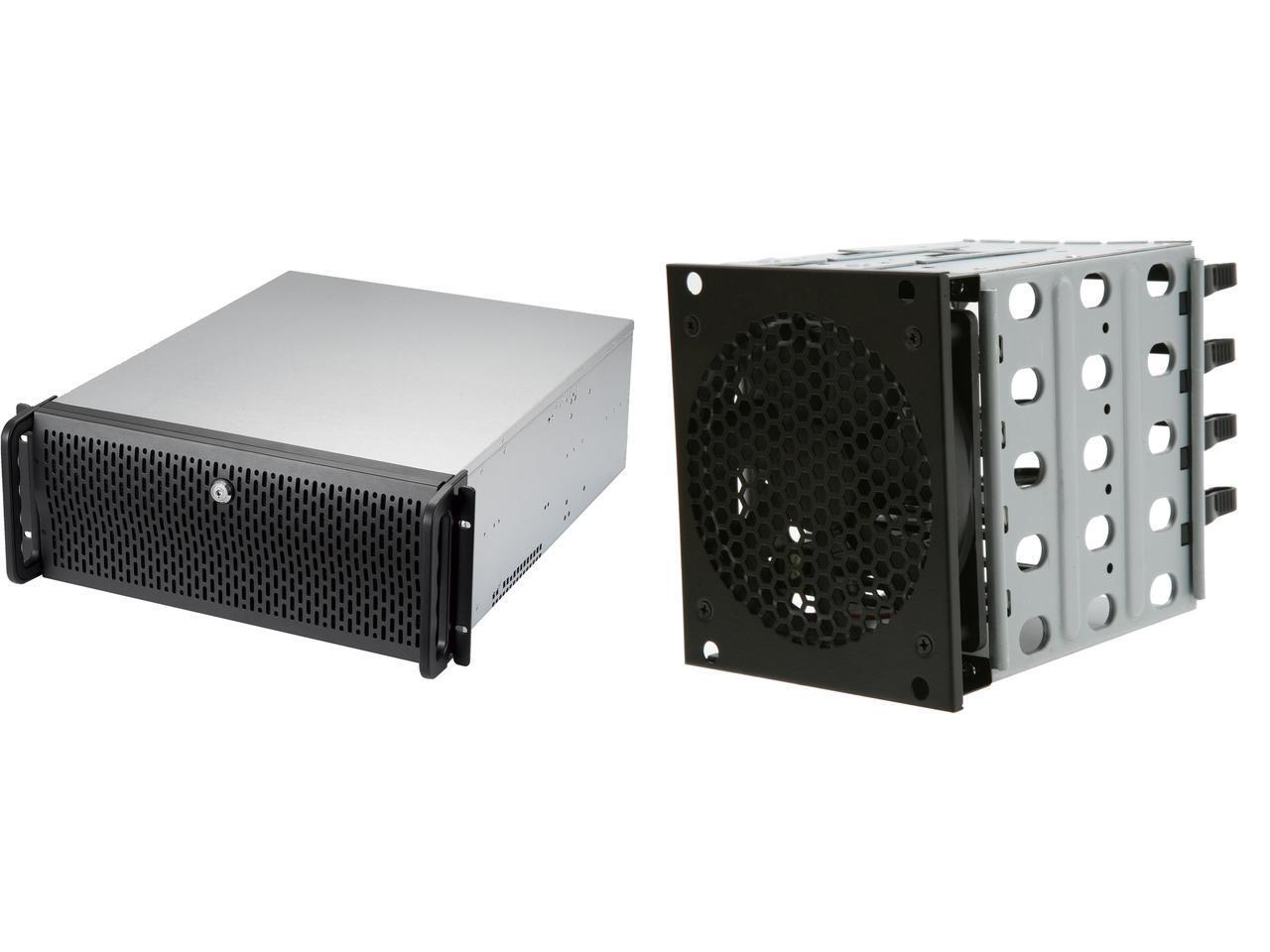 Rosewill 4U Server Chassis Rackmount Case | 8 3.5" HDD Bays, 3 5.25" Devices | ATX, CEB Compatible | 2 Front 120mm Fans, 2 Rear 80mm Fans | 2x USB 3.0 | Front Panel Lock | Silver/Black - RSV-R4000U Rosewill RSV-Cage for 4 x 3.5" HDDs -Add-O