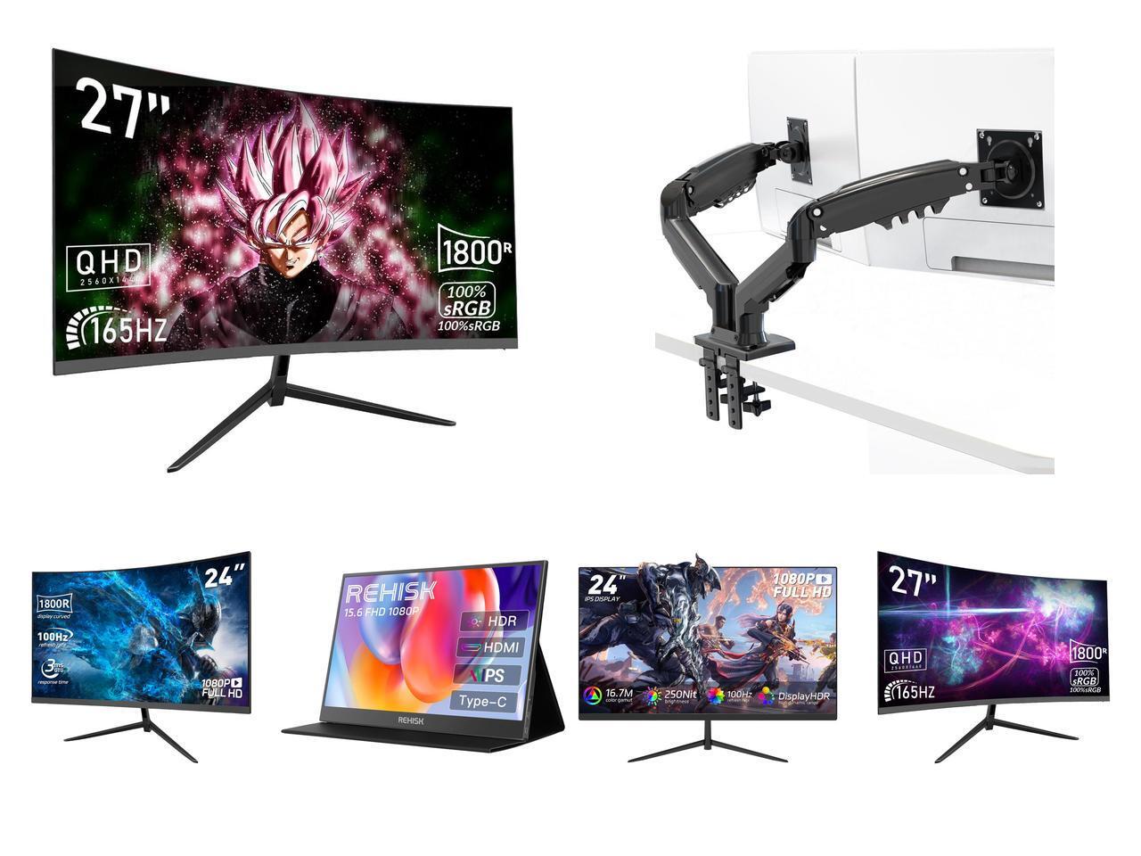 Rehisk 27'' 2K QHD Gaming Monitor - 2560p, 165Hz Refresh Rate, 1ms Response Time, AdaptiveSync, Dual HDMI & DP1.2, Ultra-Slim Bezel and 1 x Dual Monitor Mount for 15-32 Inch Screens, Adjustable Gas Spring Arm, 4.4-19.8lbs per Screen, Cable Management, Clamp & Grommet Base Heavy Duty and 1 x REHISK 24 Curved Gaming Monitor 100Hz, 1ms, FHD, FreeSync, Eye-Care, Ultra-Slim, HDMI & DP, Built-in Speakers, VESA Mount and 1 x ReHisk 15.6 inch Portable Monitor IPS FHD 1080P HDR gaming monitors for laptop with HDMI USB-C Computer Second External Monitor Eye Care dual speakers for PC Phone PS4 Xbox black and 1 x ReHisk 24 inch IPS FHD 1080P 100Hz Gaming Monitor VESA 75*75mm 1ms Response Time FreeSync & G-sync Compatible 24 inch monitor with HDMI2.0 DisplayPort 1.2 computer monitor Low-Blue Light and 1 x Rehisk 27'' Curved 2K Gaming Monitor 165Hz 2560*1440 1ms Response Time AdaptiveSync with Dual HDMI & DP1.2 Ultra-Slim Bezel