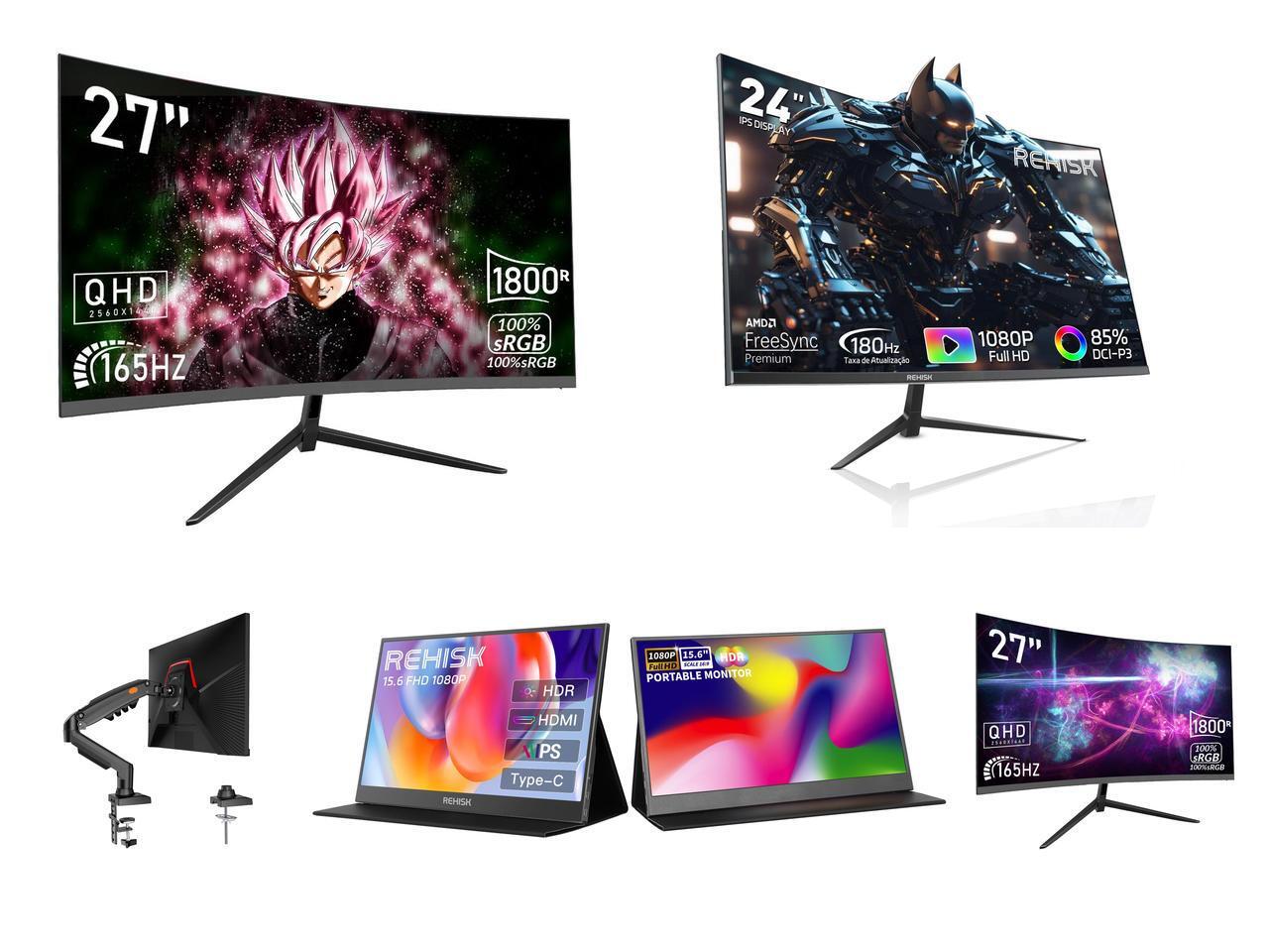 Rehisk 27'' 2K QHD Gaming Monitor - 2560p, 165Hz Refresh Rate, 1ms Response Time, AdaptiveSync, Dual HDMI & DP1.2, Ultra-Slim Bezel and 1 x Rehisk 24" 180Hz Curved Gaming Monitor FHD 1080P 1ms Response FreeSync Ultra-Thin VESA Ready for PS5 Xbox PC #New egg and 1 x Single Monitor Mount, 17 to 32 Inch, 4.4 to 19.8lbs, Adjustable Gas Spring Monitor Arm with Cable Management, Clamp & Grommet Base and 1 x ReHisk 15.6 inch Portable Monitor IPS FHD 1080P HDR gaming monitors for laptop with HDMI USB-C Computer Second External Monitor Eye Care dual speakers for PC Phone PS4 Xbox black and 1 x REHISK 15.6" inch Portable Monitor IPS FHD 1080P gaming monitor for laptop with HDMI USB-C HDR Eye Care laptop monitor extender for PC Phone PS4 Xbox dual speakers and 1 x Rehisk 27'' Curved 2K Gaming Monitor 165Hz 2560*1440 1ms Response Time AdaptiveSync with Dual HDMI & DP1.2 Ultra-Slim Bezel