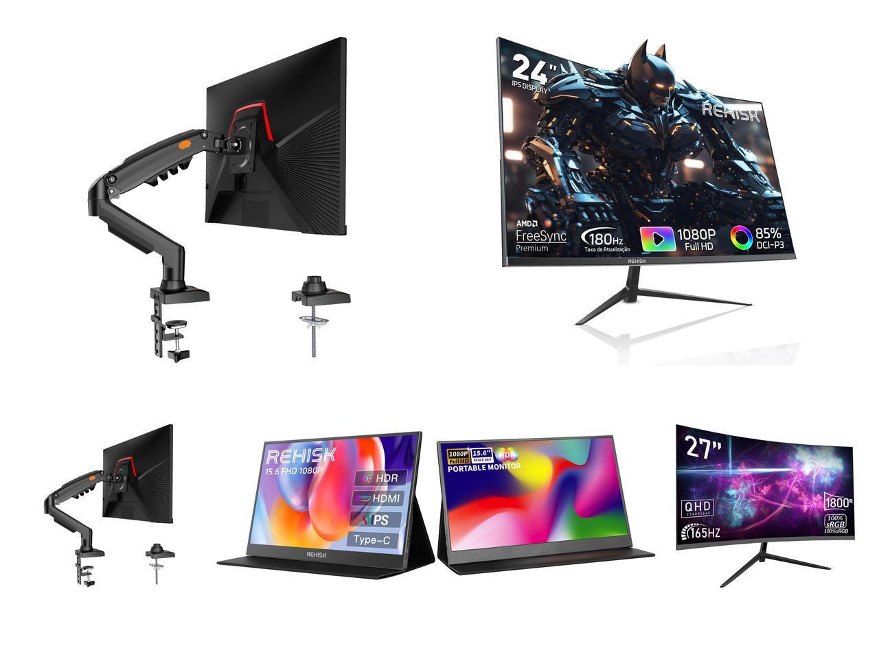 2 x Single Monitor Mount, 17 to 32 Inch, 4.4 to 19.8lbs, Adjustable Gas Spring Monitor Arm with Cable Management, Clamp & Grommet Base and 1 x Rehisk 24" 180Hz Curved Gaming Monitor FHD 1080P 1ms Response FreeSync Ultra-Thin VESA Ready for PS5 Xbox PC #New egg and 1 x ReHisk 15.6 inch Portable Monitor IPS FHD 1080P HDR gaming monitors for laptop with HDMI USB-C Computer Second External Monitor Eye Care dual speakers for PC Phone PS4 Xbox black and 1 x REHISK 15.6" inch Portable Monitor IPS FHD 1080P gaming monitor for laptop with HDMI USB-C HDR Eye Care laptop monitor extender for PC Phone PS4 Xbox dual speakers and 1 x Rehisk 27'' Curved 2K Gaming Monitor 165Hz 2560*1440 1ms Response Time AdaptiveSync with Dual HDMI & DP1.2 Ultra-Slim Bezel