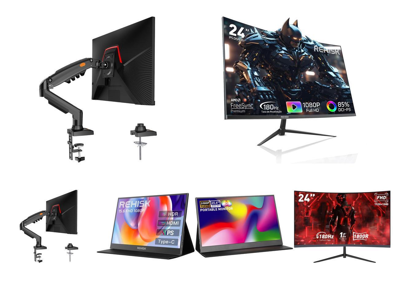 2 x Single Monitor Mount, 17 to 32 Inch, 4.4 to 19.8lbs, Adjustable Gas Spring Monitor Arm with Cable Management, Clamp & Grommet Base and 1 x Rehisk 24" 180Hz Curved Gaming Monitor FHD 1080P 1ms Response FreeSync Ultra-Thin VESA Ready for PS5 Xbox PC #New egg and 1 x ReHisk 15.6 inch Portable Monitor IPS FHD 1080P HDR gaming monitors for laptop with HDMI USB-C Computer Second External Monitor Eye Care dual speakers for PC Phone PS4 Xbox black and 1 x REHISK 15.6" inch Portable Monitor IPS FHD 1080P gaming monitor for laptop with HDMI USB-C HDR Eye Care laptop monitor extender for PC Phone PS4 Xbox dual speakers and 1 x Rehisk 24'' FHD Gaming Monitor - 180Hz Refresh, 1ms Response, AdaptiveSync,Ultra-Thin Narrow Bezel, Tilt Adjustable Design#Black Friday 180hz 24inch