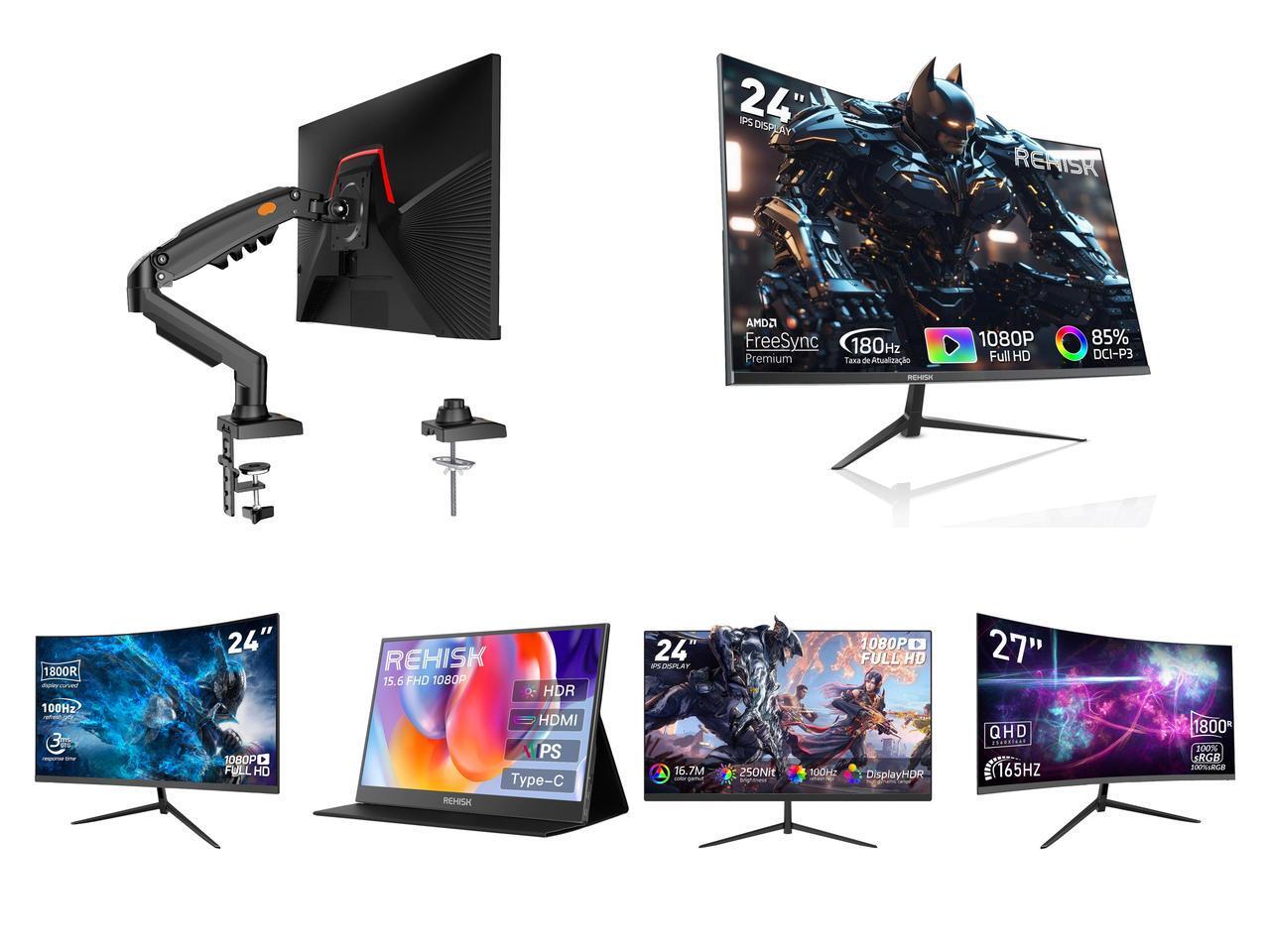 Single Monitor Mount, 17 to 32 Inch, 4.4 to 19.8lbs, Adjustable Gas Spring Monitor Arm with Cable Management, Clamp & Grommet Base and 1 x Rehisk 24" 180Hz Curved Gaming Monitor FHD 1080P 1ms Response FreeSync Ultra-Thin VESA Ready for PS5 Xbox PC #New egg and 1 x REHISK 24 Curved Gaming Monitor 100Hz, 1ms, FHD, FreeSync, Eye-Care, Ultra-Slim, HDMI & DP, Built-in Speakers, VESA Mount and 1 x ReHisk 15.6 inch Portable Monitor IPS FHD 1080P HDR gaming monitors for laptop with HDMI USB-C Computer Second External Monitor Eye Care dual speakers for PC Phone PS4 Xbox black and 1 x ReHisk 24 inch IPS FHD 1080P 100Hz Gaming Monitor VESA 75*75mm 1ms Response Time FreeSync & G-sync Compatible 24 inch monitor with HDMI2.0 DisplayPort 1.2 computer monitor Low-Blue Light and 1 x Rehisk 27'' Curved 2K Gaming Monitor 165Hz 2560*1440 1ms Response Time AdaptiveSync with Dual HDMI & DP1.2 Ultra-Slim Bezel