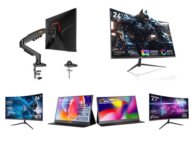 Single Monitor Mount, 17 to 32 Inch, 4.4 to 19.8lbs, Adjustable Gas Spring Monitor Arm with Cable Management, Clamp & Grommet Base and 1 x Rehisk 24" 180Hz Curved Gaming Monitor FHD 1080P 1ms Response FreeSync Ultra-Thin VESA Ready for PS5 Xbox PC #New egg and 1 x REHISK 24 Curved Gaming Monitor 100Hz, 1ms, FHD, FreeSync, Eye-Care, Ultra-Slim, HDMI & DP, Built-in Speakers, VESA Mount and 1 x ReHisk 15.6 inch Portable Monitor IPS FHD 1080P HDR gaming monitors for laptop with HDMI USB-C Computer Second External Monitor Eye Care dual speakers for PC Phone PS4 Xbox black and 1 x REHISK 15.6" inch Portable Monitor IPS FHD 1080P gaming monitor for laptop with HDMI USB-C HDR Eye Care laptop monitor extender for PC Phone PS4 Xbox dual speakers and 1 x Rehisk 27'' Curved 2K Gaming Monitor 165Hz 2560*1440 1ms Response Time AdaptiveSync with Dual HDMI & DP1.2 Ultra-Slim Bezel