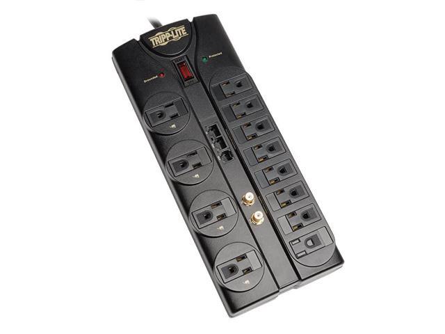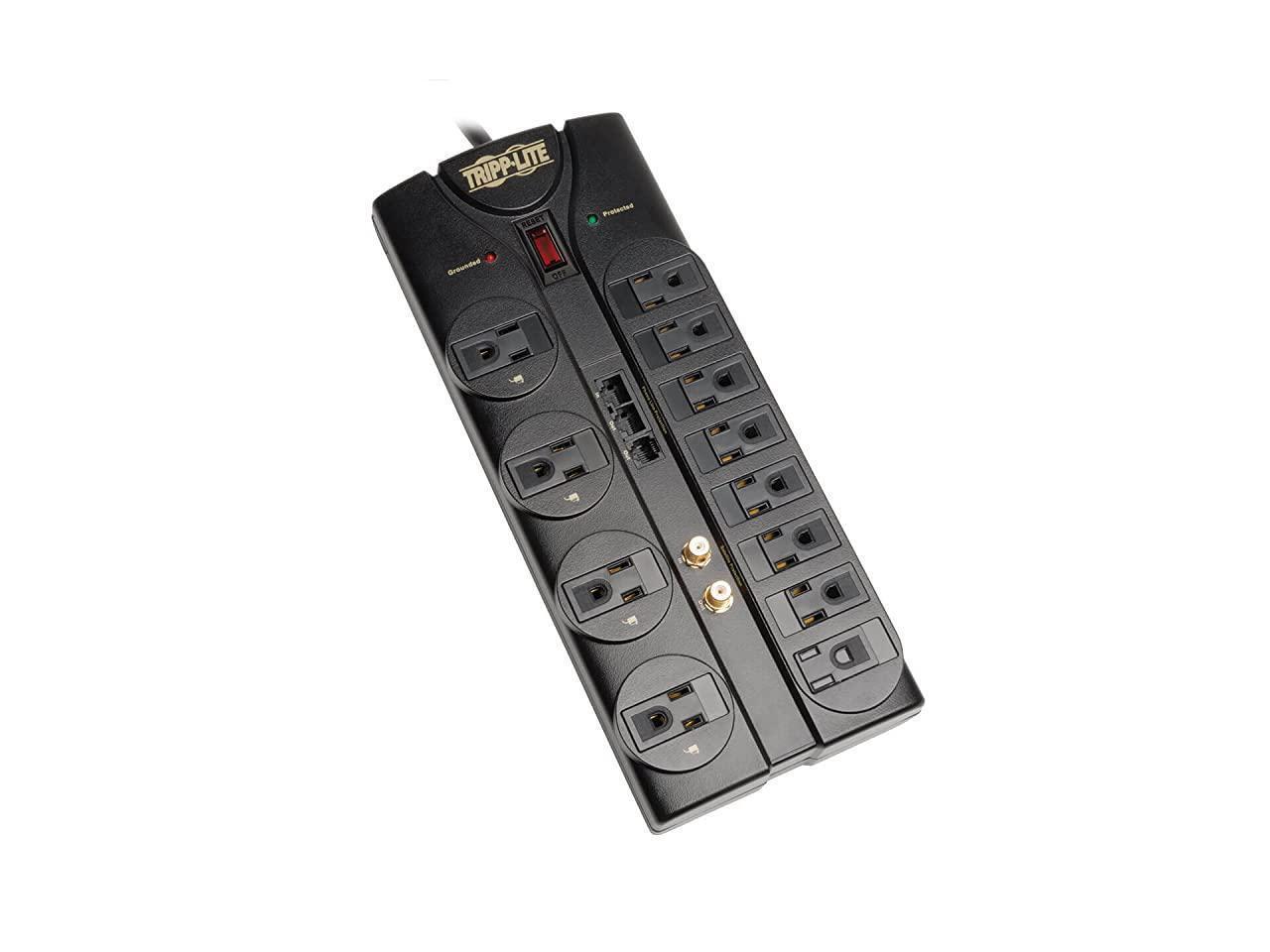 12 Outlet Surge Protector Power Strip, 8ft Cord, Right-Angle Plug, Tel/Modem/Coax/Ethernet Protection, RJ11, RJ45, & $250, 000 INSURANCE (TLP1208SAT) From the Manufacturer 12 Outlet Surge Protector Power Strip