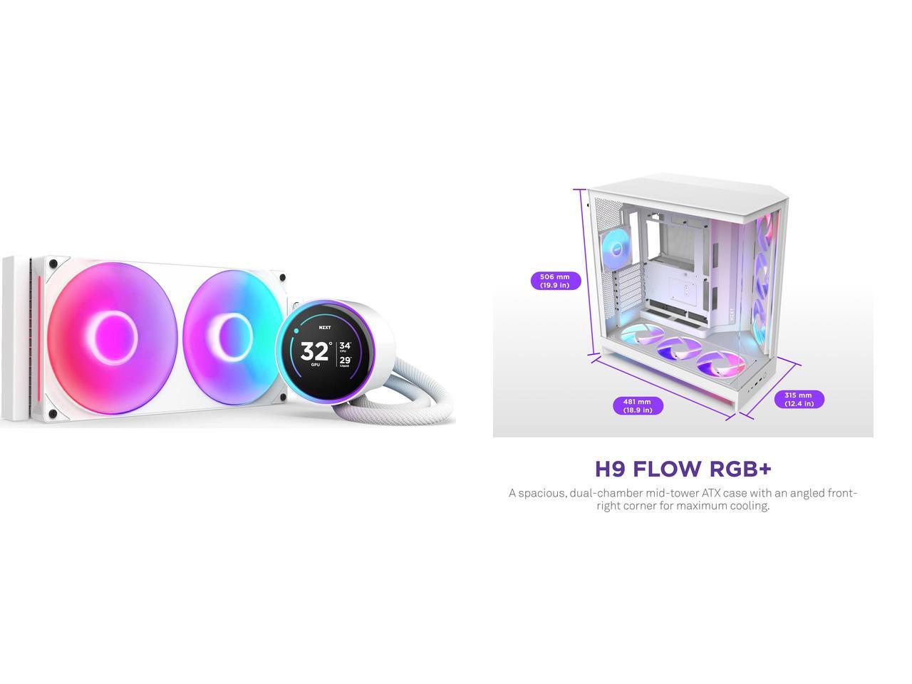 NZXT H9 Flow RGB+ (2025)  Large Dual-Chamber ATX Mid-Tower Airflow PC Case  Includes 7 RGB Fans (6 x 140mm, 1 x 120mm) & Control Hub  420mm Radiator Support  Back-Connect Ready  White