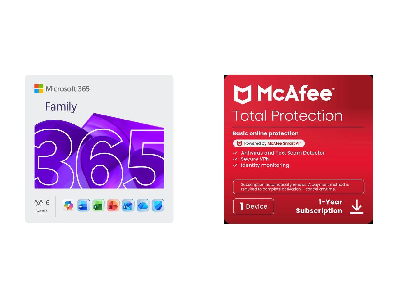 Microsoft 365 Family | 12-Month Subscription, Up to 6 People | Word, Excel, PowerPoint | 1TB OneDrive Cloud Storage | PC/MAC Instant Download McAfee Total Protection (Windows, macOS, Android, iOS, ChromeOS) 2026 | 1 Device | Includes Antiv