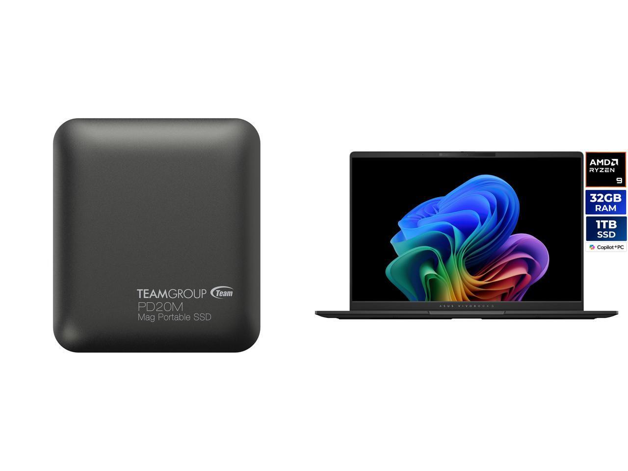Team Group PD20M 2TB Mag Portable SSD USB 3.2 Gen 2x2 Type-C Compatible with iPhone 15/15 Plus/15 Pro/15 Pro Max, Speed up to 2000MB/s (TPSEG2002T0C108) ASUS Vivobook S14 Laptop, Copilot+ PC AMD Ryzen AI 9 HX 370 32GB RAM 1TB SSD (M5406WA-B