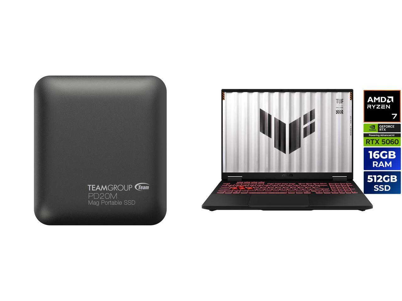 Team Group PD20M 2TB Mag Portable SSD USB 3.2 Gen 2x2 Type-C Compatible with iPhone 15/15 Plus/15 Pro/15 Pro Max, Speed up to 2000MB/s (TPSEG2002T0C108) ASUS TUF Gaming A16 - 16" GeForce RTX 5060 Laptop GPU - AMD Ryzen 7 260 - 16GB Memory -