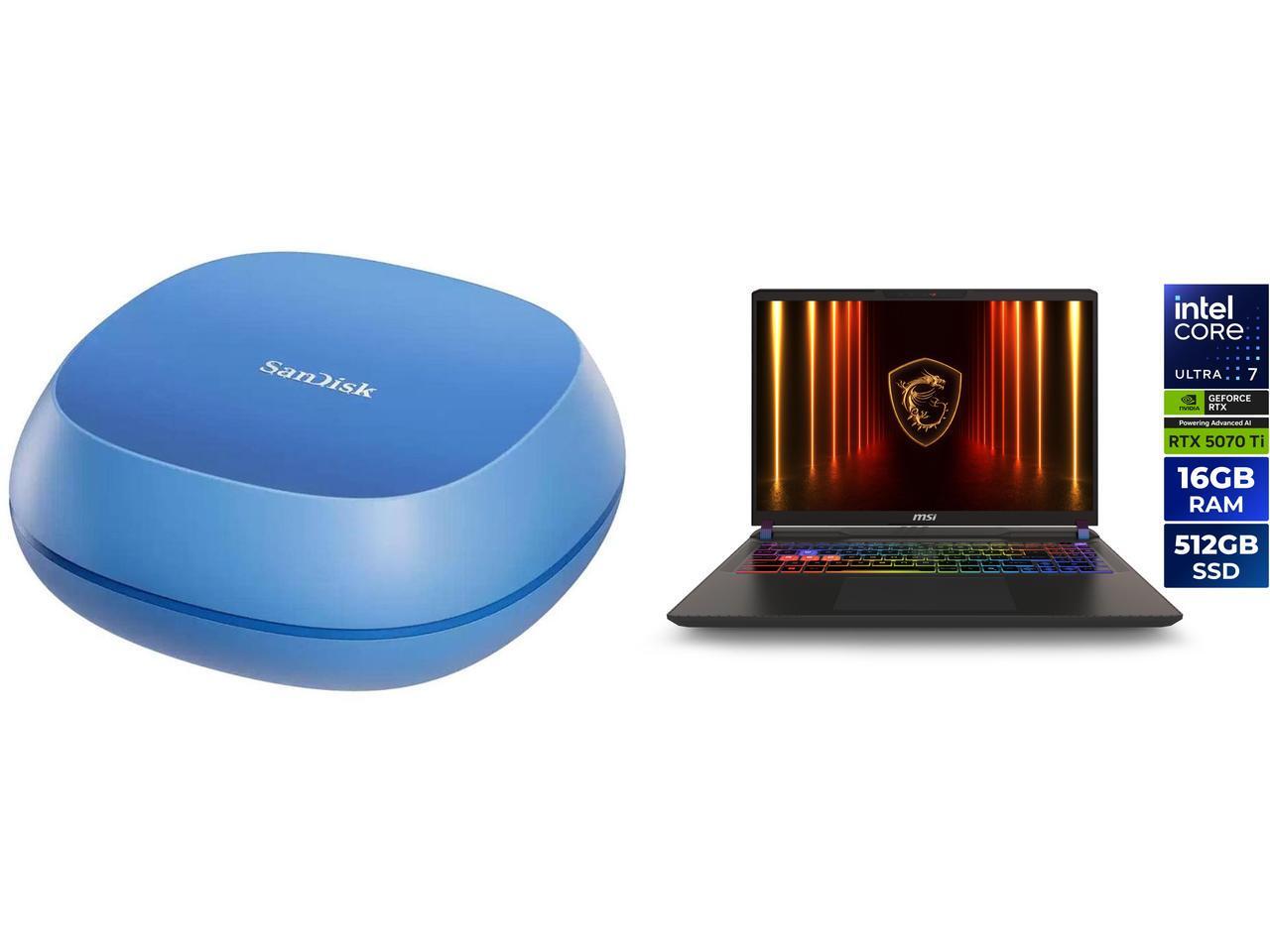 SanDisk Creator Series Desk Drive 4TB USB 3.2 Gen 2 External Desktop SSD MSI Vector - 16" GeForce RTX 5070 Ti Laptop GPU - Intel Core Ultra 7 255HX - 16GB Memory - 512 GB SSD - Windows 11 Home Gaming Laptop - 144 Hz IPS (Vector 16 HX AI A2X