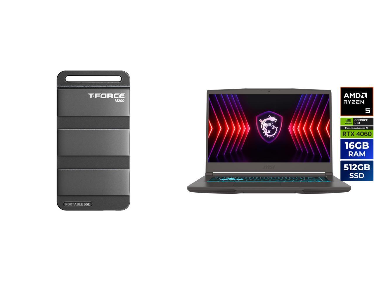 Team Group T-FORCE M200 4TB Portable SSD USB3.2 Gen 2x2 Type-C, Read/Write 2000MB/s Compatible with PS5 & Xbox & Chrome OS (T8FED9004T0C102) MSI Thin A15 - 15.6" GeForce RTX 4060 Laptop GPU - AMD Ryzen 5 7535HS - 16GB Memory - 512 GB NVMe S