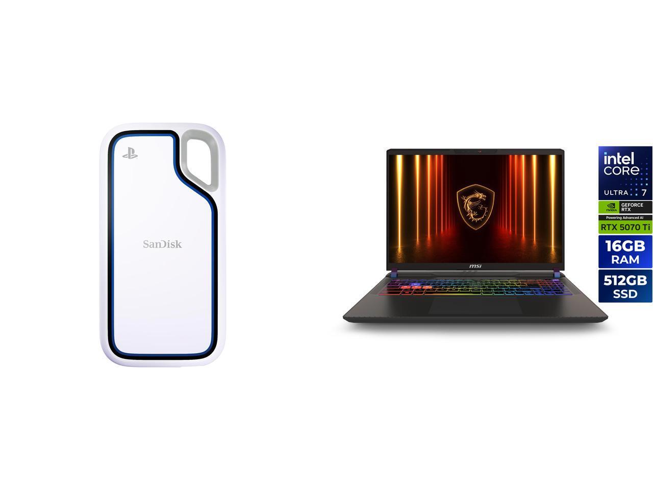 SanDisk 1TB Extreme Portable SSD, Officially Licensed for PlayStation 5 Console and PC, up to 1000MB/s, USB-C, USB 3.2 Gen 2, Drop Protection External Solid State Drive SDSSDE62P-1T00-G25 MSI Vector - 16" GeForce RTX 5070 Ti Laptop GPU - In