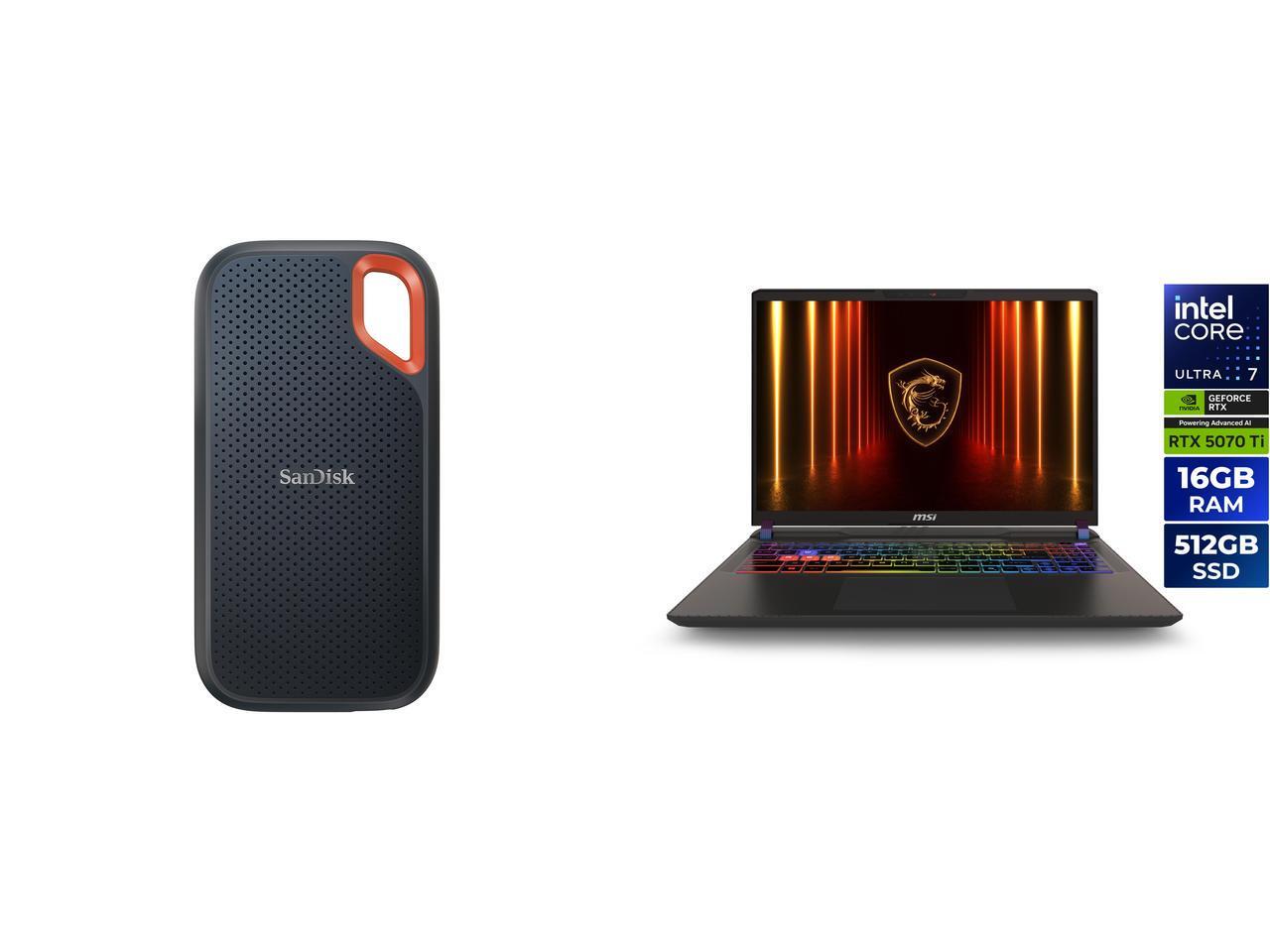 SanDisk 2TB Extreme Portable SSD - Up to 1050MB/s, USB-C, USB 3.2 Gen 2, IP65 Water and Dust Resistance, Updated Firmware - External Solid State Drive - SDSSDE61-2T00-G25 MSI Vector - 16" GeForce RTX 5070 Ti Laptop GPU - Intel Core Ultra 7