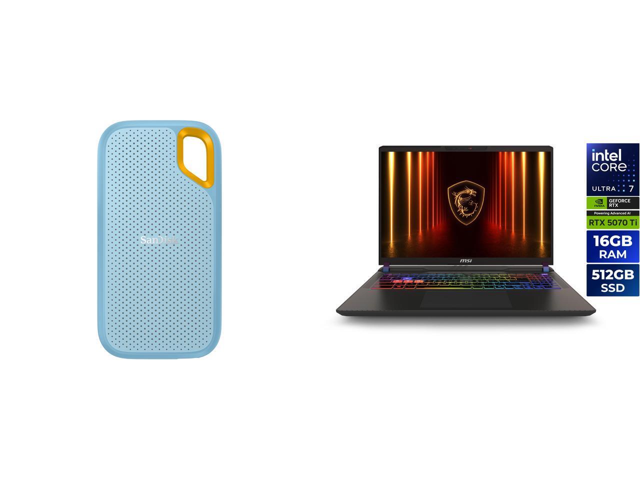 SanDisk 2TB Extreme Portable SSD - Up to 1050MB/s - USB-C, USB 3.2 Gen 2 - External Solid State Drive - SDSSDE61-2T00-G25B MSI Vector - 16" GeForce RTX 5070 Ti Laptop GPU - Intel Core Ultra 7 255HX - 16GB Memory - 512 GB SSD - Windows 11 Ho