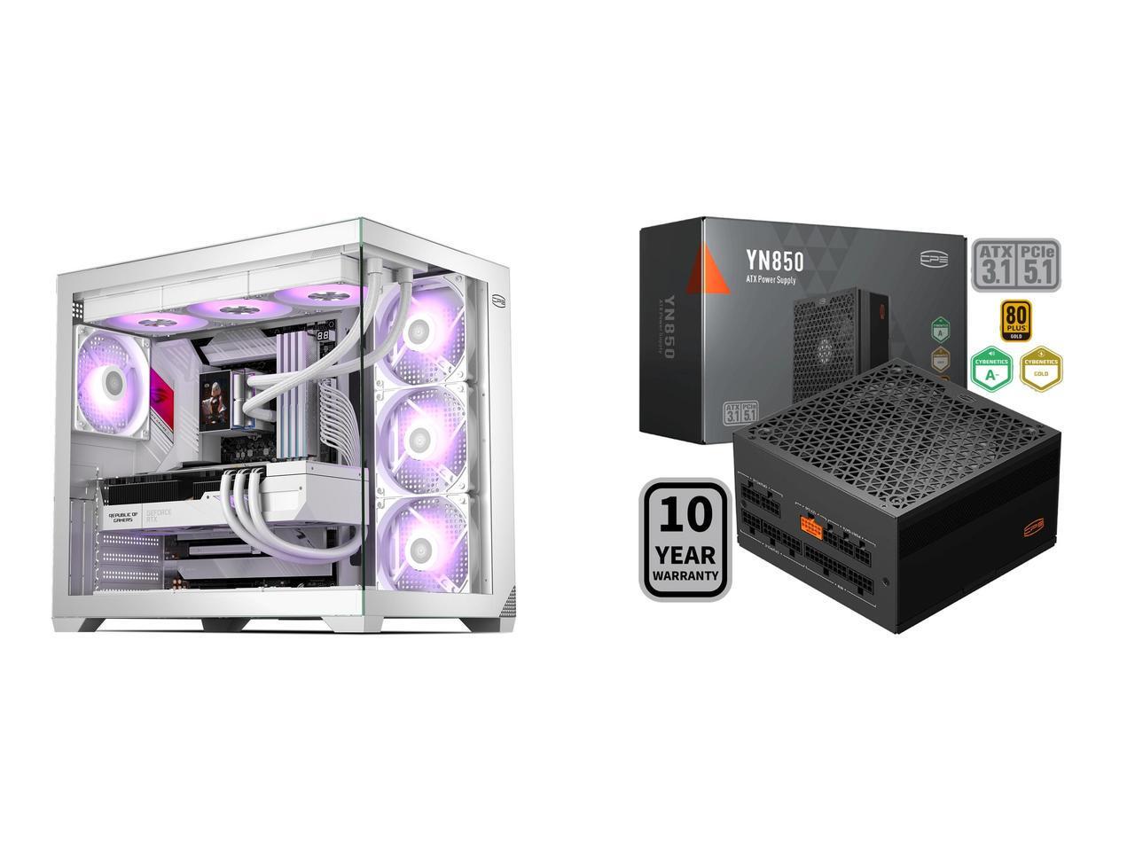 PCCOOLER CPS C3 T700 PC Case, Dual-Chamber Mid-Tower ATX Case, High-Airflow Computer Case, BTF Motherboard Supports, Sturdy Tempered Glass Front & Side Panels, White (Fans Not Included) and 1 x PCCOOLER CPS YN850 Fully Modular Power Supply, 80 PLUS Gold 850W PSU, 12V-2x6 Cable, ATX 3.1 & PCIe 5.1 Ready, 105°C Rated Japanese Capacitors, ECO Mode, 135mm FDB Fan, 10 Years Warranty