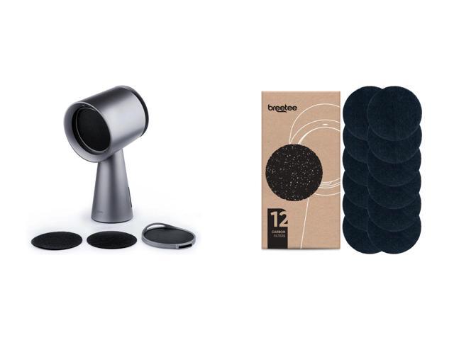 BREETEE Portable Range Hood Kitchen - Powerful 3-Speed Suction, Countertop Compact Ductless, 2x Core Filters, 2x Carbon Filters, Low Noise Kitchen Exhaust Fan, Oil Collection Cup, [Silver] and 1 x BREETEE Carbon Filters Set - 12 Pack Replacement Filters for Breetee Portable Range Hoods - Efficient Odor Removal - 4,7 IN Circle Charcoal Filter for Range Hood Black 12 Pack