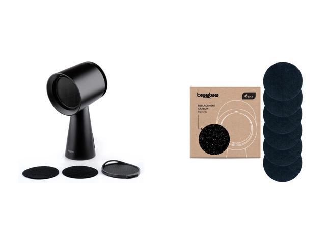 BREETEE Portable Range Hood Kitchen - Powerful 3-Speed Suction, Countertop Compact Ductless, 2x Core Filters, 2x Carbon Filters, Low Noise Kitchen Exhaust Fan, Oil Collection Cup, [Black] and 1 x BREETEE Carbon Filters Set - 6 Pack Replacement Filters for Breetee Portable Range Hoods - Efficient Odor Removal - 4,7 IN Circle Charcoal Filter for Range Hood Black