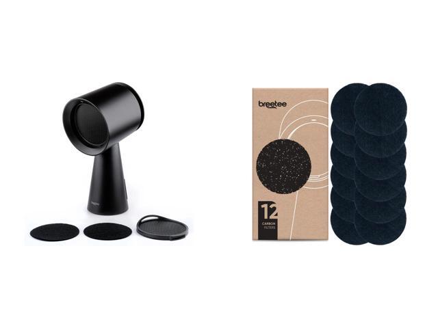 BREETEE Portable Range Hood Kitchen - Powerful 3-Speed Suction, Countertop Compact Ductless, 2x Core Filters, 2x Carbon Filters, Low Noise Kitchen Exhaust Fan, Oil Collection Cup, [Black] and 1 x BREETEE Carbon Filters Set - 12 Pack Replacement Filters for Breetee Portable Range Hoods - Efficient Odor Removal - 4,7 IN Circle Charcoal Filter for Range Hood Black 12 Pack