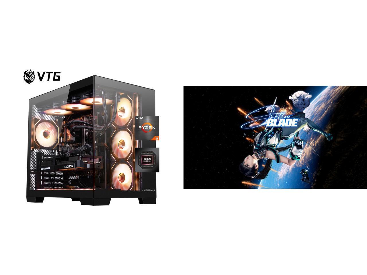 VTG Gaming Desktop PC , Ryzen5 9600X, Radeon RX 9070 GRE ,MSI B650M 32GB DDR5 1TB NVMe SSD, 650W GOLD PSU, Wi-Fi,360 Liquid Cooler,ARGB Fans , Windows 11 Home 64-bit ,Prebuilt Gaming Pc New computer Stellar Blade™ - PC [Steam Code, UNITED S