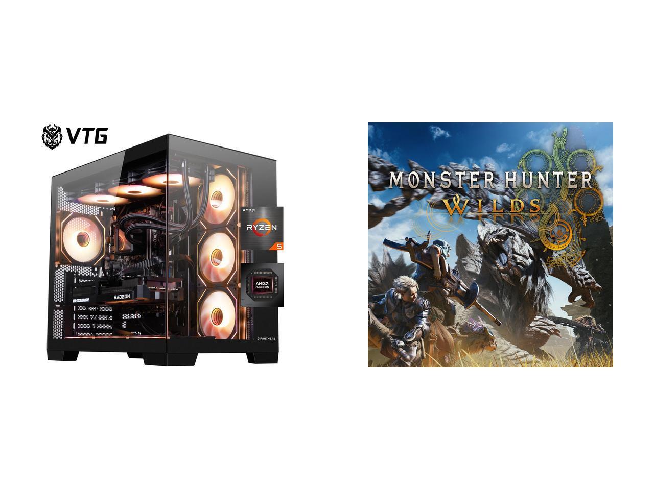 VTG Gaming Desktop PC , Ryzen5 9600X, Radeon RX 9070 GRE ,MSI B650M 32GB DDR5 1TB NVMe SSD, 650W GOLD PSU, Wi-Fi,360 Liquid Cooler,ARGB Fans , Windows 11 Home 64-bit ,Prebuilt Gaming Pc New computer Monster Hunter Wilds - PC [Steam Online G