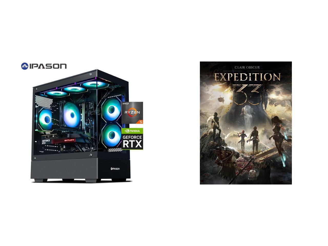 IPASON Xelra Gaming Desktop PC,AMD Ryzen5 9600X,Geforce RTX 5060 8G,16GB DDR5,1TB NVMe SSD,Wi-Fi,Windows 11 Home,Black Prebuilt Pc Computer Clair Obscur: Expedition 33 - PC [Steam Online Game Code]