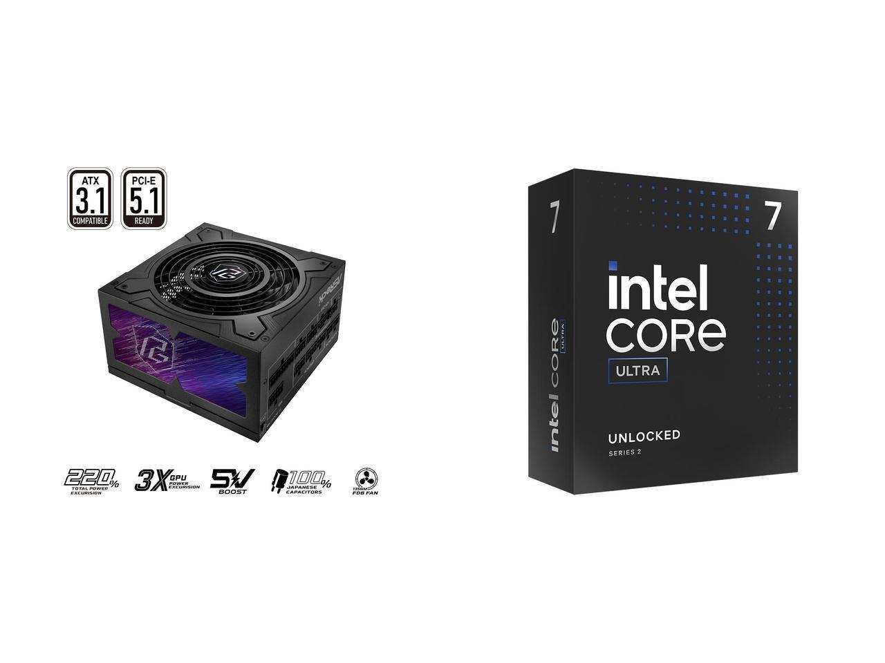 ASRock Phantom Gaming PG-850G 850W 80 PLUS GOLD & Cybenetics PLATINUM Full Modular Power Supply, ATX3.1 & PCIe5.1 Ready with Dual Color 12V-2x6 Cable, 10 Years Warranty Intel Core Ultra 7 265K, Arrow Lake 20-Core (8P+12E), LGA 1851, 125W De