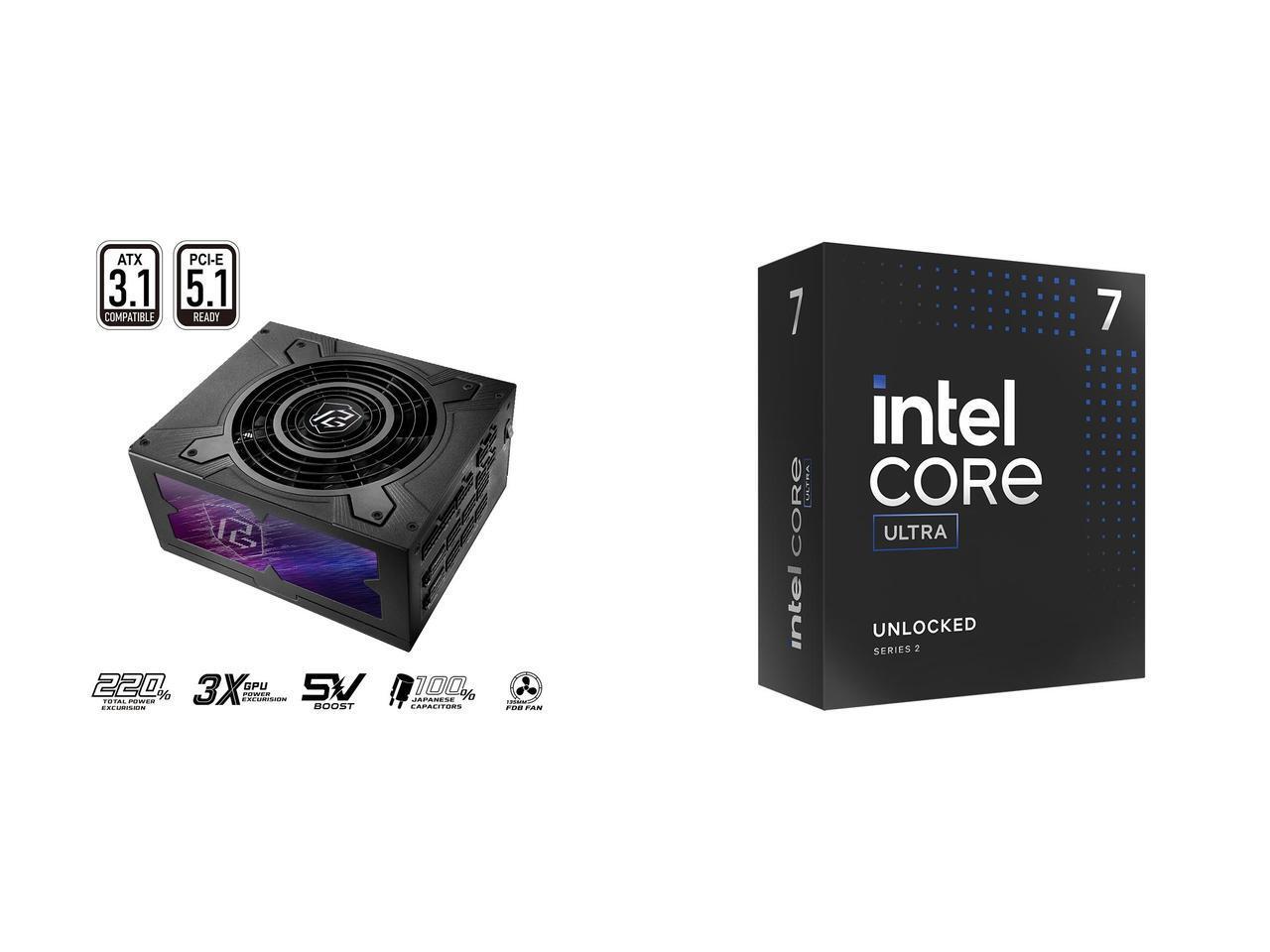 ASRock PG-1300G 1300 W Power Supply Intel Core Ultra 7 265K, Arrow Lake 20-Core (8P+12E), LGA 1851, 125W Desktop Processor - BX80768265K