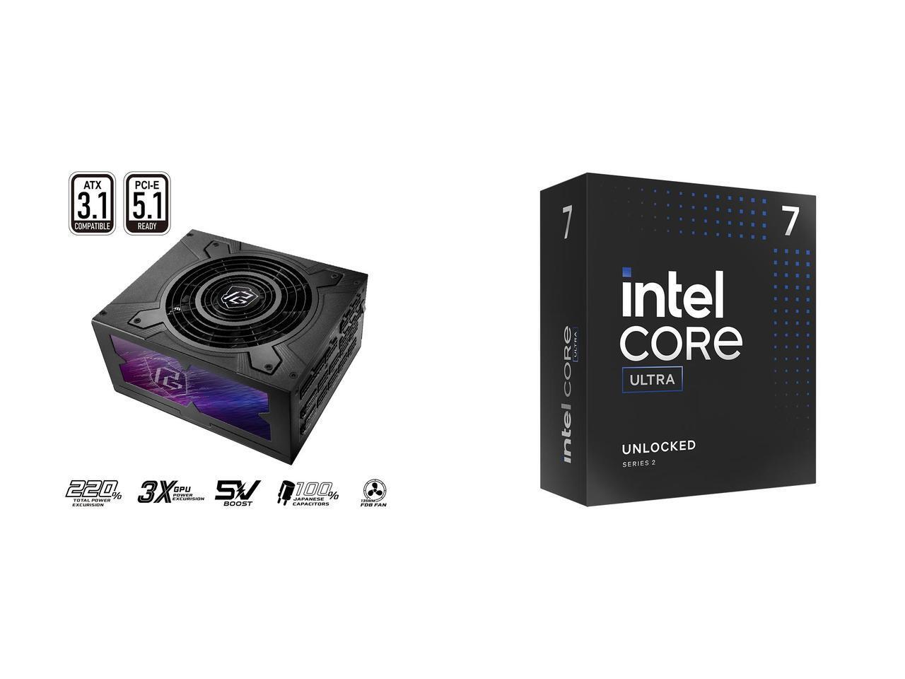 ASRock PG-1600G 1600 W Power Supply Intel Core Ultra 7 265K, Arrow Lake 20-Core (8P+12E), LGA 1851, 125W Desktop Processor - BX80768265K