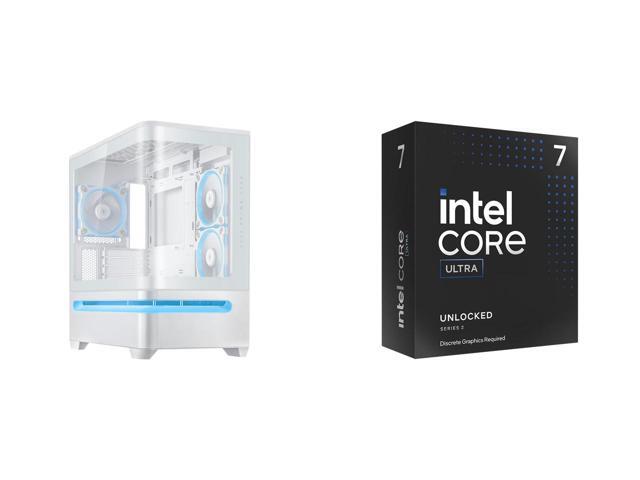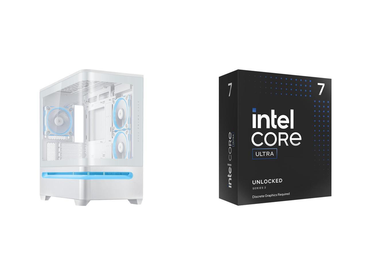 ASUS Prime AP202 ARGB White mATX case with fully tempered curved glass, supports graphics cards up to 420mm long, 360mm long radiators, easy-detach rail, patented slot vent, built-in three ARGB fans Intel Core Ultra 7 265KF, Arrow Lake 20-C