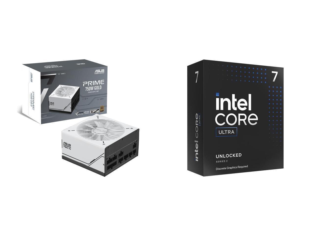 ASUS Prime 750W Gold (750 Watt, ATX 3.0 Compatible, Fully Modular Power Supply, 80+ Gold Certified, Dual Ball Bearings, Two Color Options in One, 8-Year Warranty) Intel Core Ultra 7 265KF, Arrow Lake 20-Core (8P+12E), LGA 1851, 125W Deskto