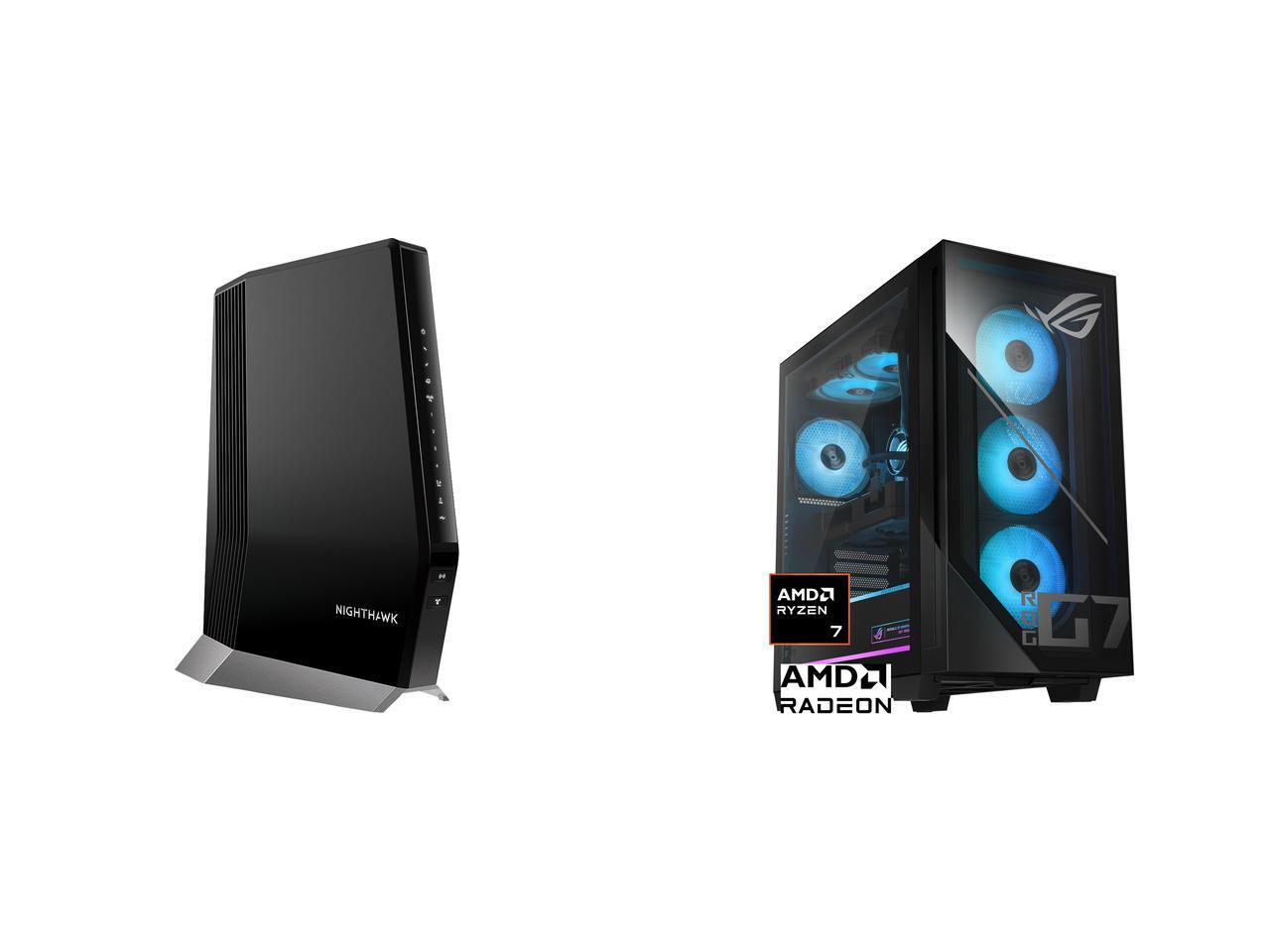 Packaging| Package Contents | Nighthawk® AX8/8 Stream WiFi 6 Cable Modem Router Ethernet cable Quick start guide Power adapter |