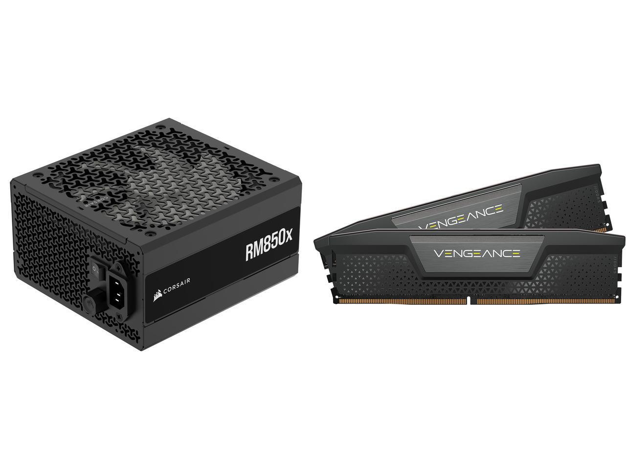 CORSAIR RMx Series RM850x ATX Power Supply - Fully Modular - ATX 3.1 - PCIe 5.1 - Cybenetics Gold - Low-Noise - Japanese Capacitors - 850 Watts CORSAIR Vengeance 64GB (2 x 32GB) 288-Pin PC RAM DDR5 6000 (PC5 48000) Desktop Memory Model CMK6