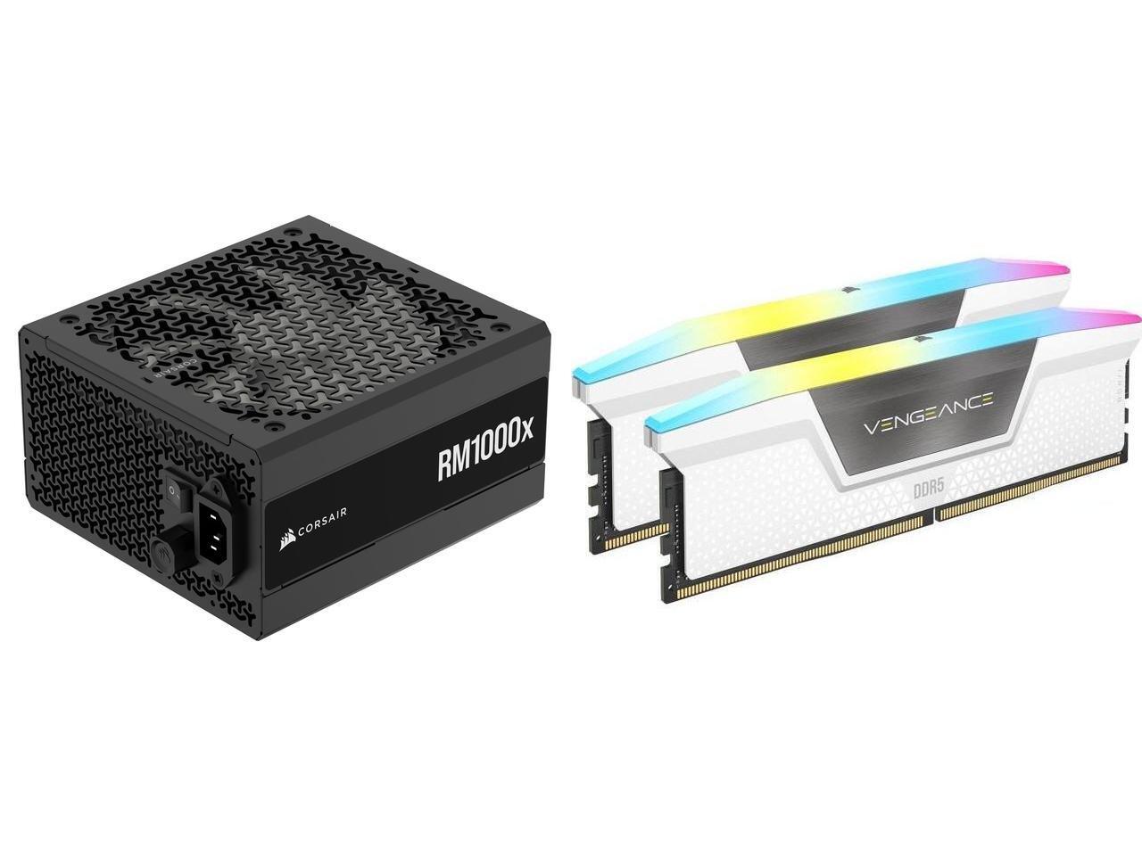 CORSAIR RMx Series RM1000x ATX Power Supply - Fully Modular - ATX 3.1 - PCIe 5.1 - Cybenetics Gold - Low-Noise - Japanese Capacitors - 1000 Watts CORSAIR Vengeance RGB 32GB (2 x 16GB) 288-Pin PC RAM DDR5 6000 (PC5 48000) Desktop Memory Mode