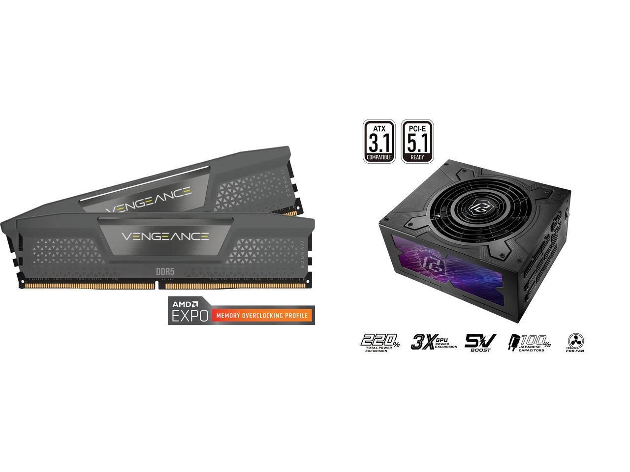 CORSAIR Vengeance 96GB (2 x 48GB) 288-Pin PC RAM DDR5 6000 (PC5 48000) Desktop Memory Model CMK96GX5M2E6000Z36 ASRock PG-1300G 1300 W Power Supply