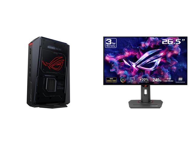 ASUS ROG NUC (2025) Gaming Mini PC with Intel Core Ultra 7 (Series 2) ARL-HX CPU, NVIDIA GeForce RTX 5060 Mobile GPU, 32GB DDR5 RAM, 1TB NVMe SSD, Thunderbolt 4, triple-fan cooling, and ARGB lighting ASUS ROG Strix OLED XG27AQDMGZ gaming mo