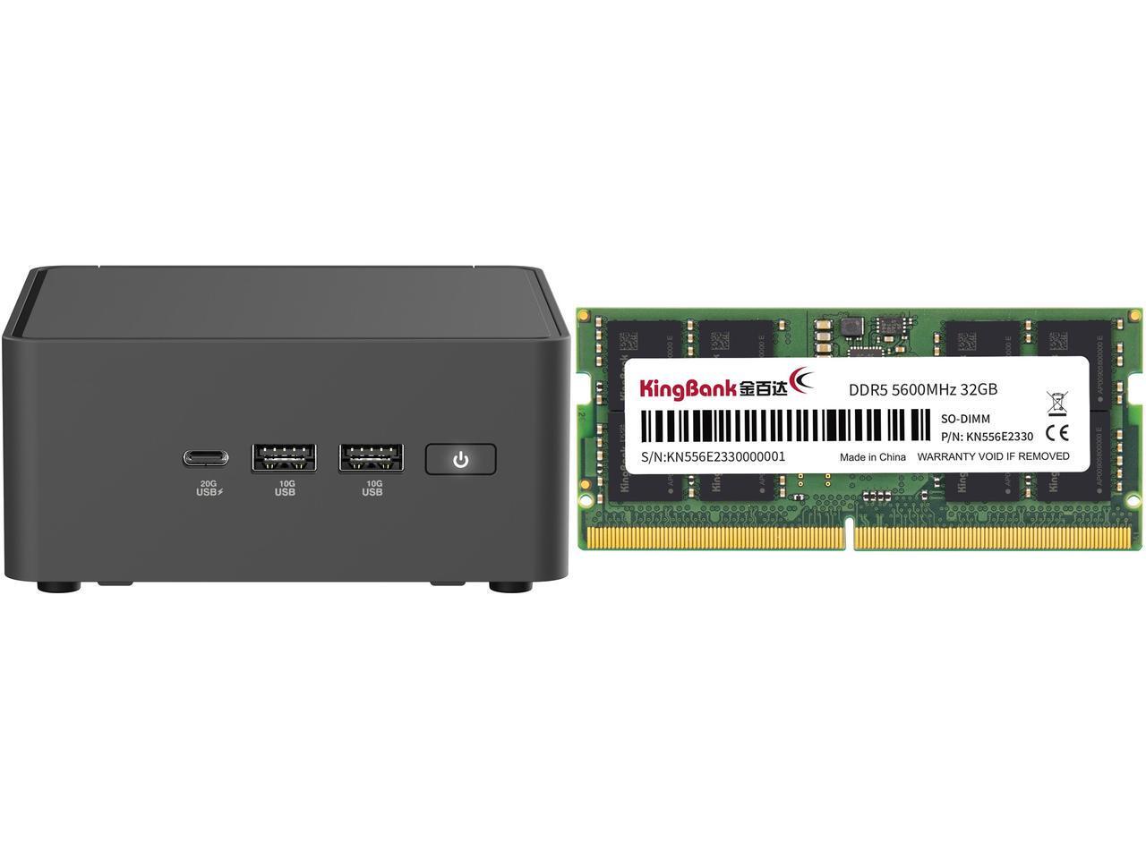 ASUS NUC 15 Pro RNUC15CRHU50000U Black Barebone System w/ Intel Ultra 5 225H CPU, Integrated - Intel Arc 130T Graphics ,US cord, Single Unit - Memory and Storage Sold Separately Kingbank 32GB 262-Pin DDR5 SO-DIMM DDR5 5600 (PC5 44800) Lapto