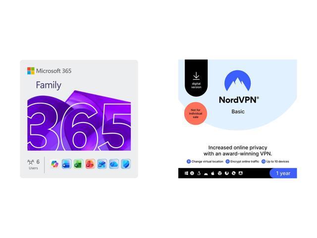 Microsoft 365 Family | 12-Month Subscription, Up to 6 People | Word, Excel, PowerPoint | 1TB OneDrive Cloud Storage | PC/MAC Instant Download NordVPN Basic, Premium VPN Service - 10 Devices /1 Year- Download