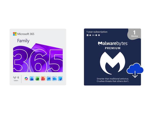 Microsoft 365 Family | 12-Month Subscription, Up to 6 People | Word, Excel, PowerPoint | 1TB OneDrive Cloud Storage | PC/MAC Instant Download Malwarebytes Premium - 1 -Device / 1 Year - Download