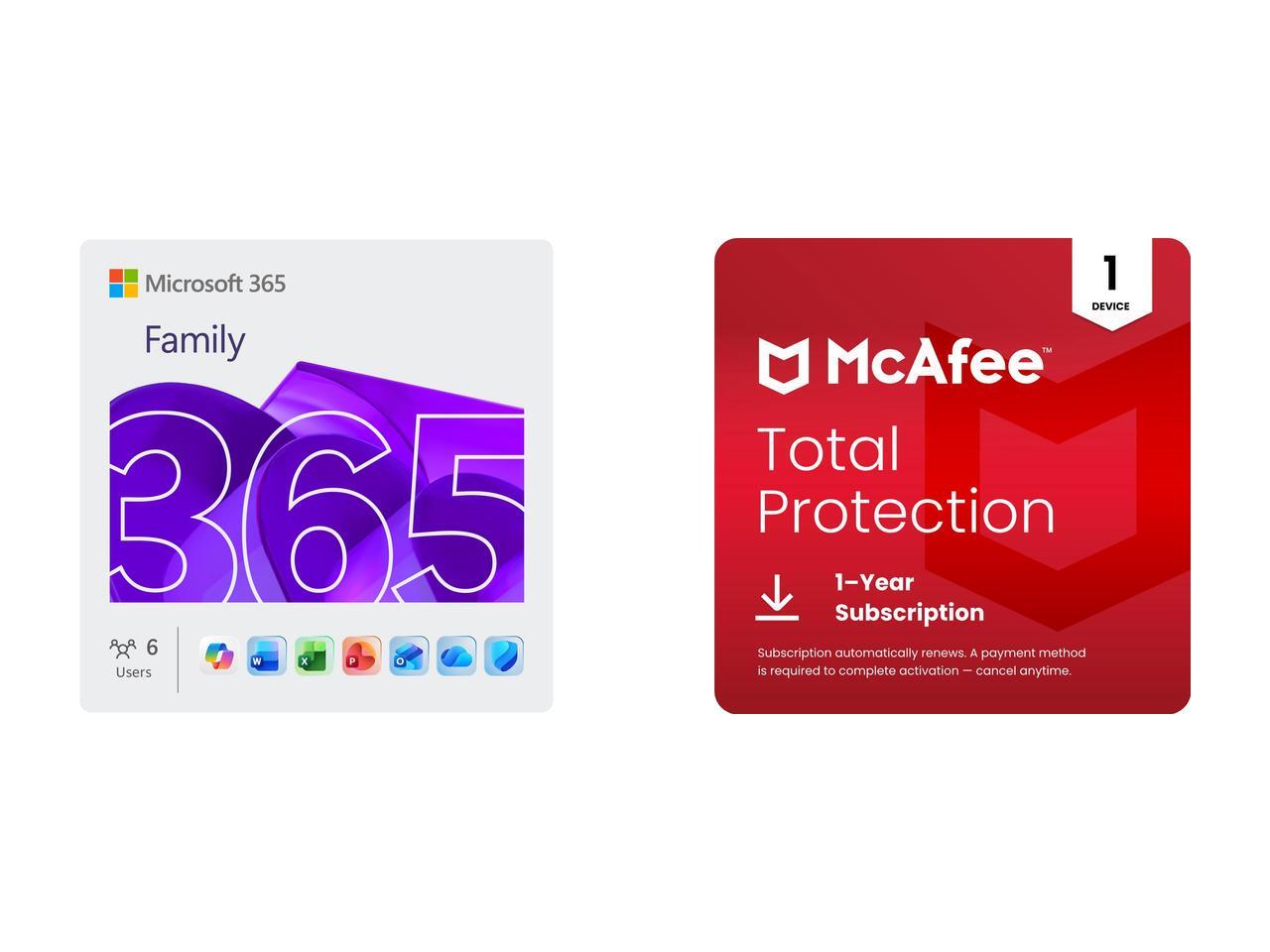 Microsoft 365 Family | 12-Month Subscription, Up to 6 People | Word, Excel, PowerPoint | 1TB OneDrive Cloud Storage | PC/MAC Instant Download McAfee Total Protection (Windows, macOS, Android, iOS, ChromeOS) 2026 | 1 Device | Includes Antiv