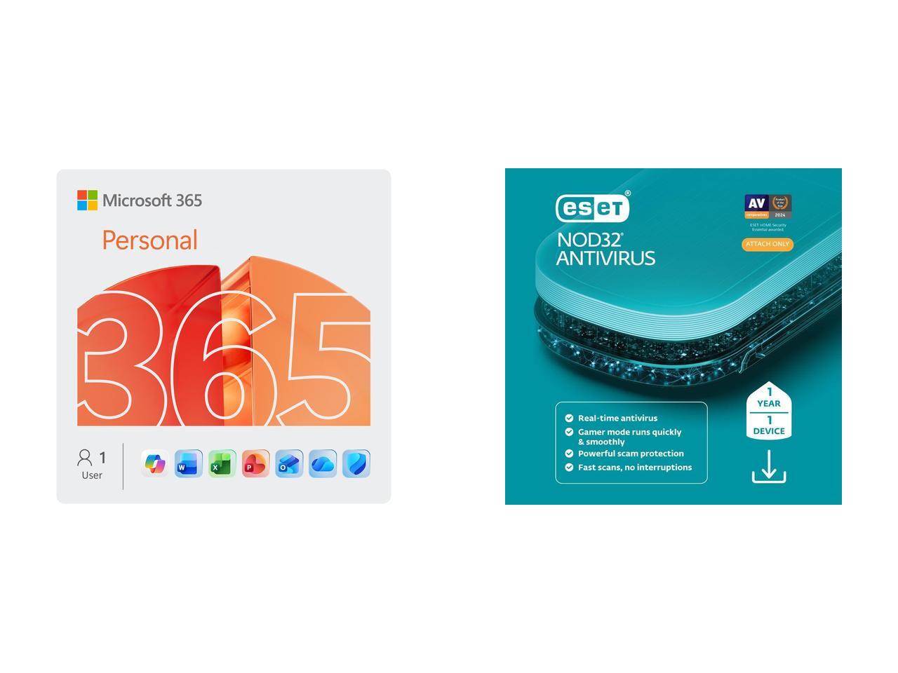 Microsoft 365 Personal | 12-Month Subscription, 1 person | Word, Excel, PowerPoint | 1TB OneDrive cloud storage | PC/Mac Instant Download ESET NOD32 Antivirus 2026 - 1 Device / 1 Year - Download