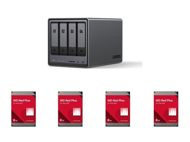 UGREEN NASync DXP4800, 4-Bay NAS with Intel® N100 Quad-Core CPU (Up to 3.4GHz) 8GB DDR5, 2x M.2 PCIe Slots, 2.5GbE Port, SD Card Reader (Diskless) 4 x WD Red Plus 8TB 5640 RPM 256MB Cache SATA 6.0Gb/s 3.5" Hard Drives --WD60EFPX