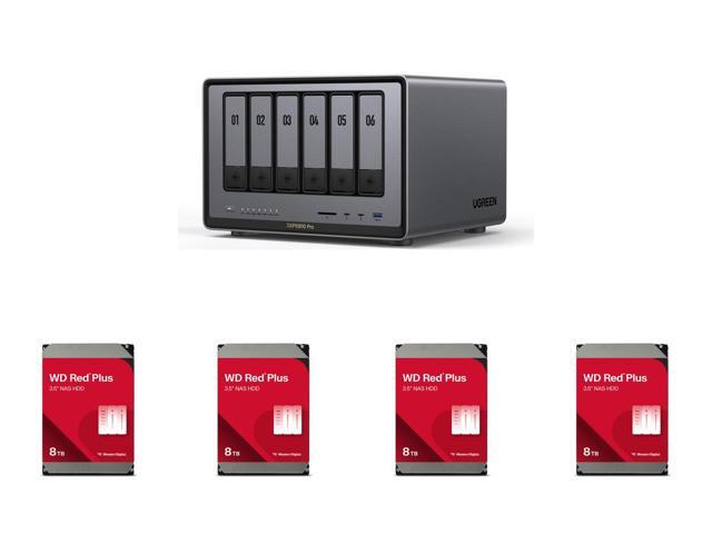 UGREEN NASync DXP6800 Pro, 6-Bay Thunderbolt™ NAS with Inte® l 10-Core i5 CPU (Up to 4.40 GHz), 8GB DDR5, 4x M.2 PCIe Slots, 1x 2.5GbE, 1x 10GbE, 2 TBT4, SD Slot (Diskless) 4 x WD Red Plus 8TB 5640 RPM 256MB Cache SATA 6.0Gb/s 3.5" Hard Dri