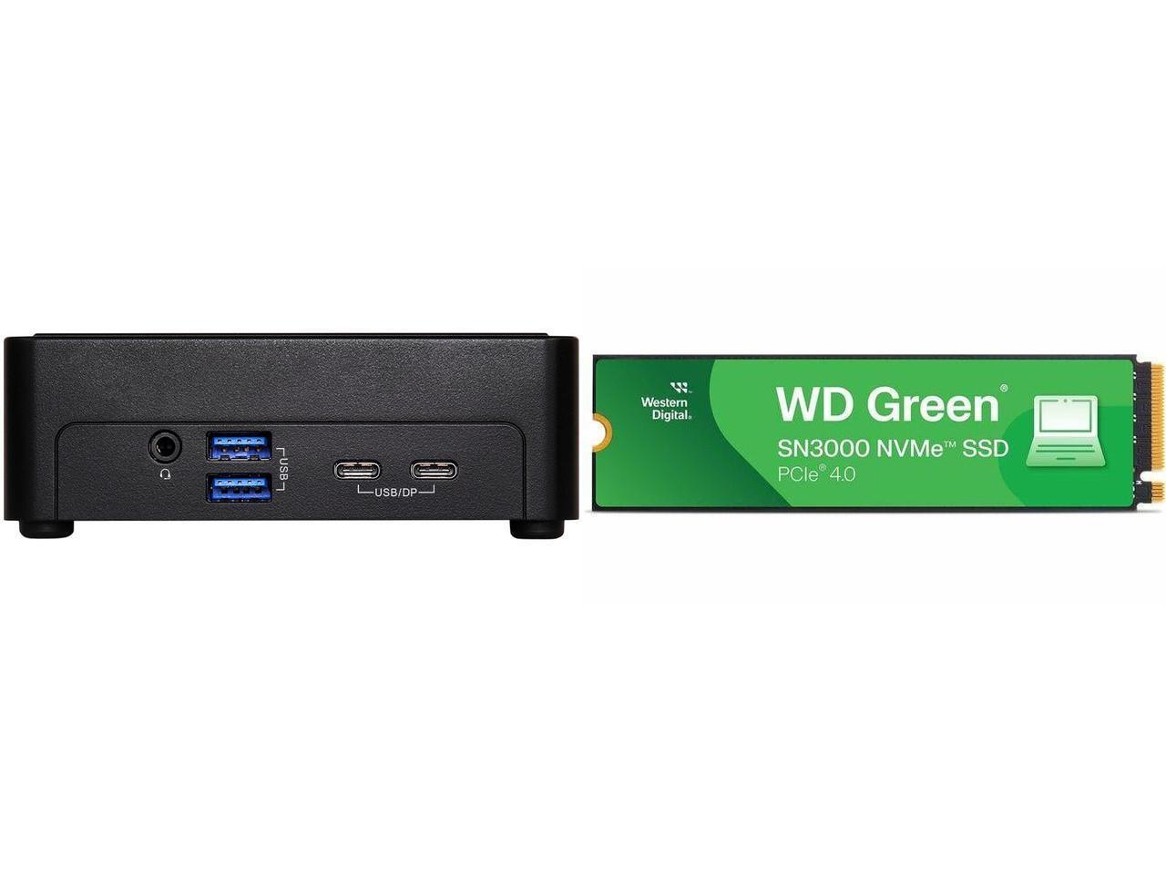 ASRock Industrial NUCS BOX-255H Black Mini-PC Barebone Western Digital Green SN3000 WDS100T4G0E-00CPS0 1 TB Solid State Drive - M.2 2280 Internal - PCI Express NVMe 4.0 x4 - Notebook, Desktop PC, Computer Device Supported