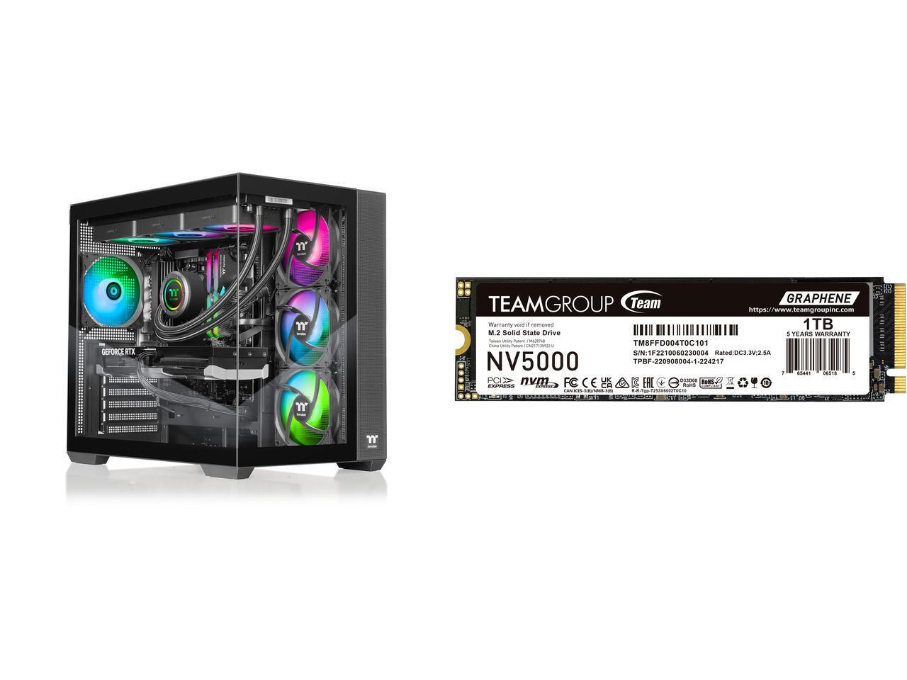 Thermaltake Gaming Desktop PC NE 9870-V380 AMD Ryzen 7 9800X3D 32GB DDR5 2TB SSD GeForce RTX 5070 Team Group NV5000 M.2 2280 1TB PCIe 4.0 x4 with NVMe Internal Solid State Drive (SSD) TM8FGM001T0C101
