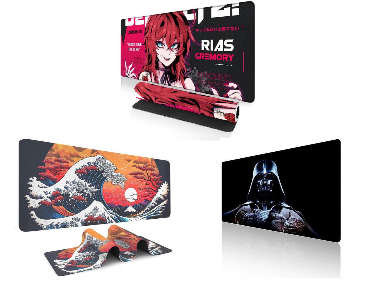 Alpha Fit Anime Gaming Mouse Pad XXL (35.4" x 15.7") - Crimson Red Haired Demon Girl - Large Mouse Pad Extended - Extra Large Gaming Mouse Pads Gothic Waifu Style - 01 and 1 x Alpha Fit Orange Sunset Great Wave Gaming Mouse Pad XXL (35.4" x 15.7") - Warm Golden Hour Japanese Art Desk Mat - Lofi Aesthetic Extended Pad and 1 x Alpha Fit Star Wars Gaming Mouse Pad XXL (31.5" x 11.8") - Darth Vader Dark Side Art - Large Mouse Pad Extended - Extra Large Gaming Mouse Pads Sith Lord Desk Mat 31