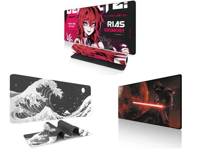 Alpha Fit Anime Gaming Mouse Pad XXL (35.4" x 15.7") - Crimson Red Haired Demon Girl - Large Mouse Pad Extended - Extra Large Gaming Mouse Pads Gothic Waifu Style - 01 and 1 x Alpha Fit Black & White Great Wave Gaming Mouse Pad XXL (35.4" x 15.7") - Monochrome Ink Wash Japanese Art Desk Mat - Minimalist Setup with Stitched Edges and 1 x Alpha Fit Starwar Gaming Mouse Pad XXL (31.5" x 11.8") - Star Wars Themed Large Mouse Pad - Extra Large Gaming Mouse Pads with Non-Slip Rubber Base & Stitched Edges for Sci-Fi Setup