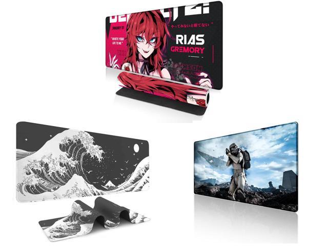 Alpha Fit Anime Gaming Mouse Pad XXL (35.4" x 15.7") - Crimson Red Haired Demon Girl - Large Mouse Pad Extended - Extra Large Gaming Mouse Pads Gothic Waifu Style - 01 and 1 x Alpha Fit Black & White Great Wave Gaming Mouse Pad XXL (35.4" x 15.7") - Monochrome Ink Wash Japanese Art Desk Mat - Minimalist Setup with Stitched Edges and 1 x Alpha Fit Star Wars Gaming Mouse Pad XXL (31.5" x 11.8") - Stormtrooper & Star Destroyer Battlefield Art - Large Mouse Pad Extended - Galactic Empire Gaming Desk Mat 34